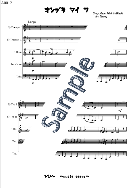 ゲオルク・フリードリヒ・ヘンデル(Georg Friedrich Händel)により作曲されたオンブラ・マイ・フ(Ombra mai fù)の金管五重奏の楽譜です。トランペット、ホルン、トロンボーン、チューバでお楽しみいただけます。